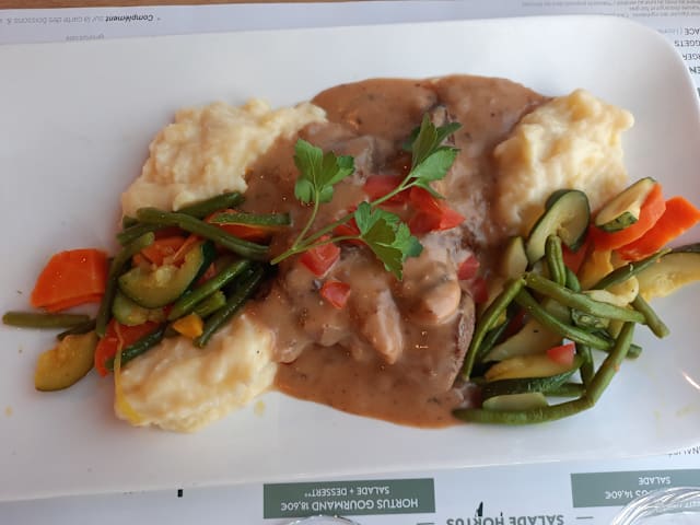 6.5/10Pleasant atmosphere and welcoming host. Not much choice in this area and so we were grateful to be able to order a meal. The food was acceptable and much appreciated.