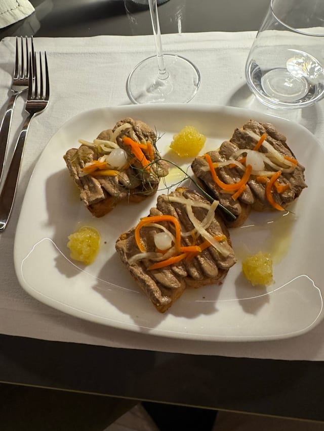 Pate’ di fegatini, pan brioche, verdurine in carpione e confettura hortus