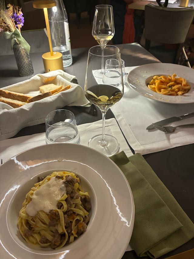 Tagliatelle al ragu’ bianco di chianina locale e crema al parmigiano