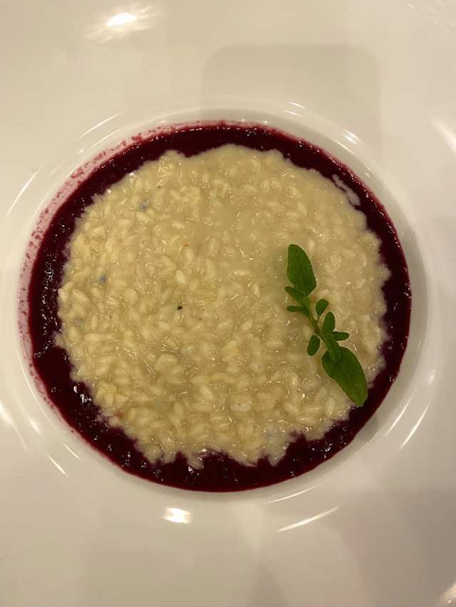 Vellutata di cavolo cappuccio rosso con scaglie di cioccolato bianco
