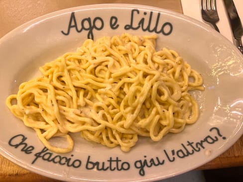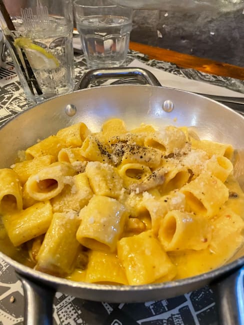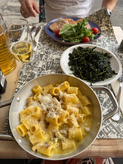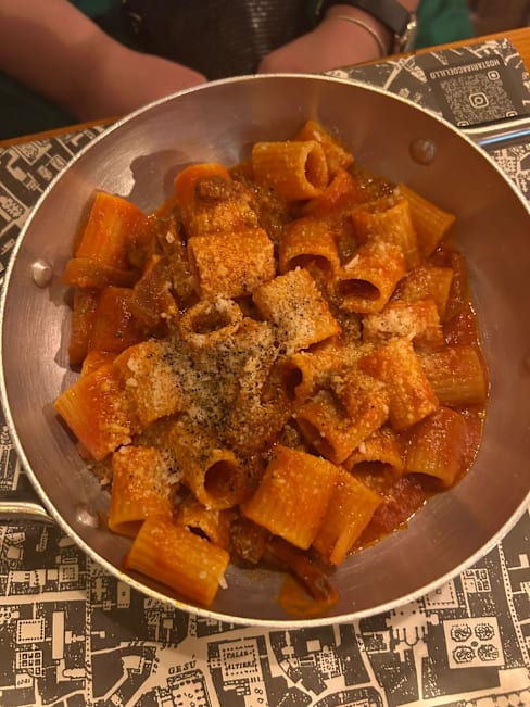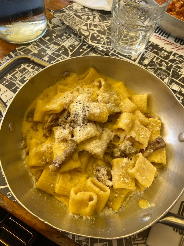 10/10The foods are fabulous and the pasta is exactly cooked in the way that I prefer( as usual pasta is sometimes a little bit hard for me). The amount is very huge, based on its price. I also got to try the carcioffi fritti.