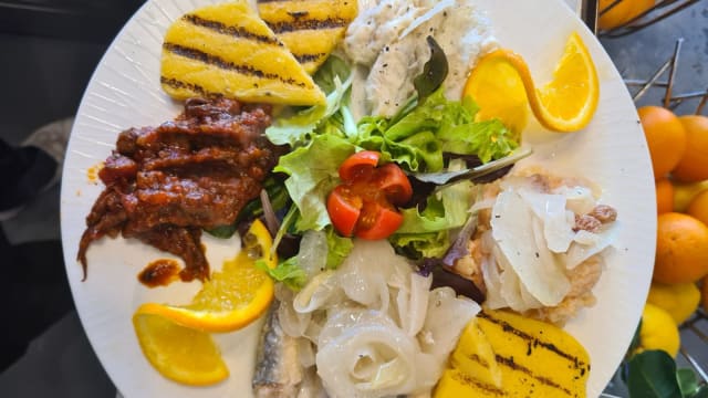 6/10The restaurant did have a booking but no tables were ready so we had to wait, but not for long. The waiters were nice and we got bread and drinks quite quickly. Our starter was a Venetian fish platter which was very tasty and I would recommend. Unfortunately the main dish of Ribeye steak was really tough and tasted of very little. It came with rocket and tomato salad. We also ordered beef cheeks with polenta which tasted good, but looked terrible, just like a plate of slop. French fries were hot and crisp which was good. It wasn't really the Venetian experience I was hoping for as the rating had been reasonably high at 8.9. Not sure why. The fact I got a 50% discount with the Fork saved the evening.
