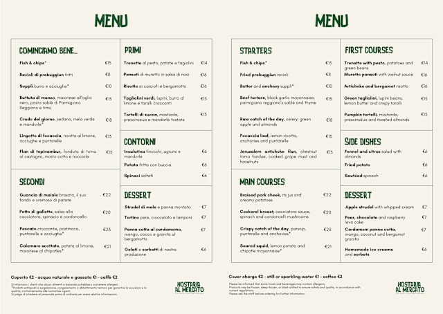 9.5/10The food is stunning, great ambiance just above the old Food Market in downtown Genoa, attentive service and astonishing hospitality and recommendations by the sommelier. We really enjoyed our time at Hostaria al Mercato. We’ll surely come back!