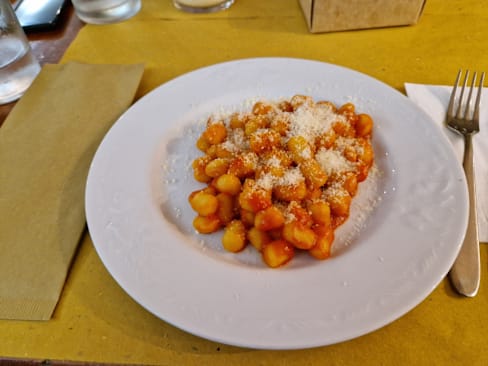 9.5/10We visited the Hosteria da Bacco yesterday in the evening, we reserved the table by the Fork and we managed to find a parking place just in front of the restaurant. The food was delicious we ordered Gnocchi alla Papera and Gnocchi Basilico e Pomodore, Tagliata Pollo and Insalata Mista. The dishes were served quickly and very tasty! The highlight of the dishes is also freshly baked bread! It was crunchy and very aromatic. Also what is worthy to be recommended is the coffee- great intensity. It's a great opportunity to spend a pleasant evening. Complimenti! 🤩 Grazie mille