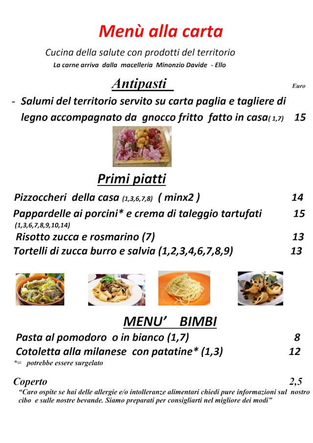 MENU' DEGUSTAZIONE €30 per guest