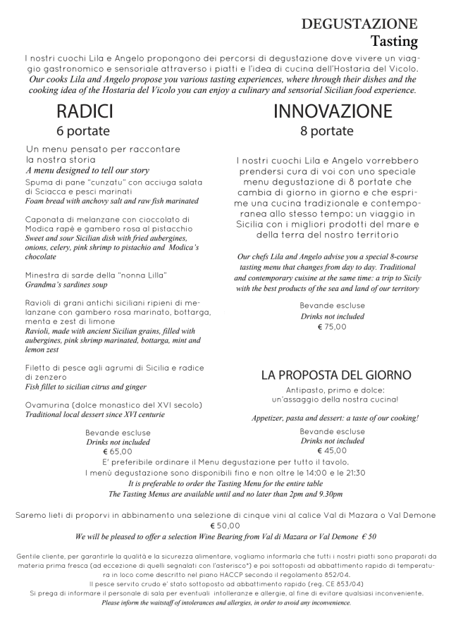 10/10While on holiday in Sciacca, my husband and I wanted something a little more refined and delicate than a typical dinner out, and Hostaria del Vicolo was the perfect choice. Recommended in the Michelin Guide, it did not disappoint. We chose the Innovation Menu – eight courses in total – and were amazed both by the creativity and by the portion sizes, which were generous without being overwhelming (though by course five we were already wondering how we’d make it to the end!). Service was excellent throughout. Each dish was presented and explained in perfect English, with thoughtful wine recommendations to match – we tried different glasses of regional wines, all perfectly suited to our tastes. It was a fabulous dining experience from start to finish – elegant, innovative, and memorable. Highly recommended if you’re looking for something truly special in Sciacca.