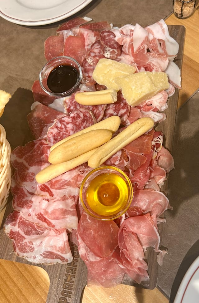 Prosciutto di parma DOP 24 mesi, coppa piacentina DOP, salame nostrano, mortadella IGP e pancetta piacentina DOP