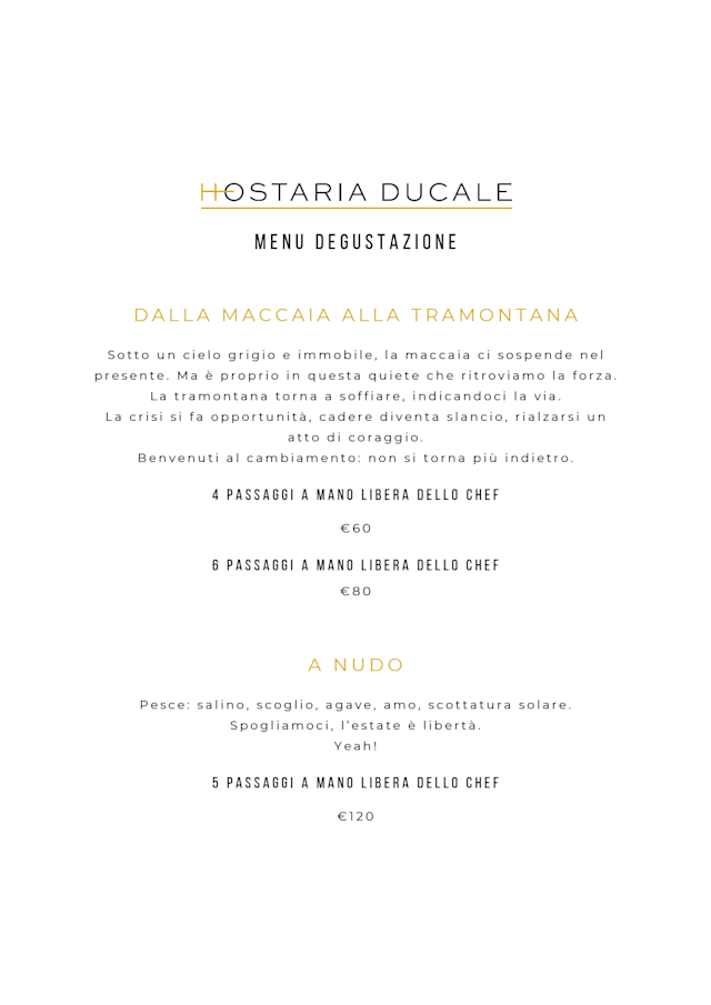 It will be a huge pleasure to see you again at Hostaria Ducale and introduce you to the chef to be able to talk about food. We are waiting for you!