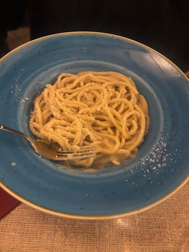 10/10omg , I travel through Italy very often and this is among the best pastas I've ever eaten . service was amazing . it was very charming, we are changing plans to eat here again . wine list was amazing . this is a must visit in the colosseum area !!!