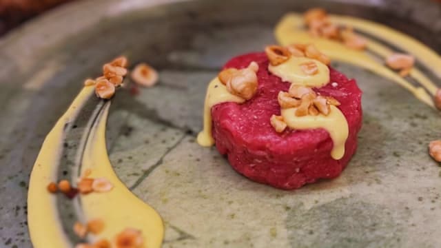 Tartare di manzo piemontese con fichi, nocciole e cipolle in agrodolce