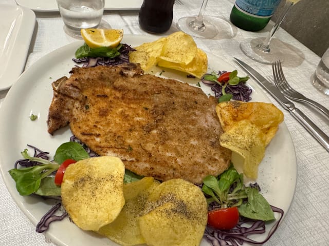 6.5/10A pleasant room and a welcoming staff. But overly salted risotto that had vegetables that were clearly a veggie mix that came out of a bag, and a limp green salad. Disappointing after a long hot day of travel. Not the worst meal I’ve ever had, but far from what I’d hoped.