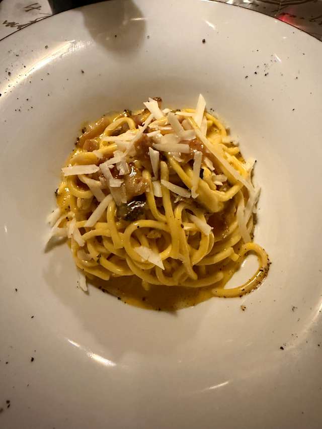 - Bigoli in salsa di acciughe e cipolla, con uvetta e pinoli tostati