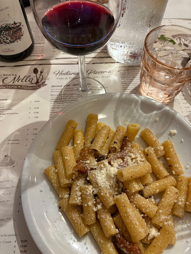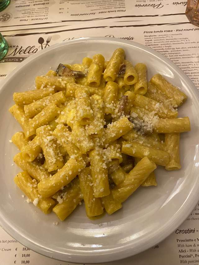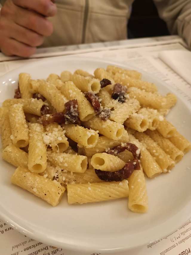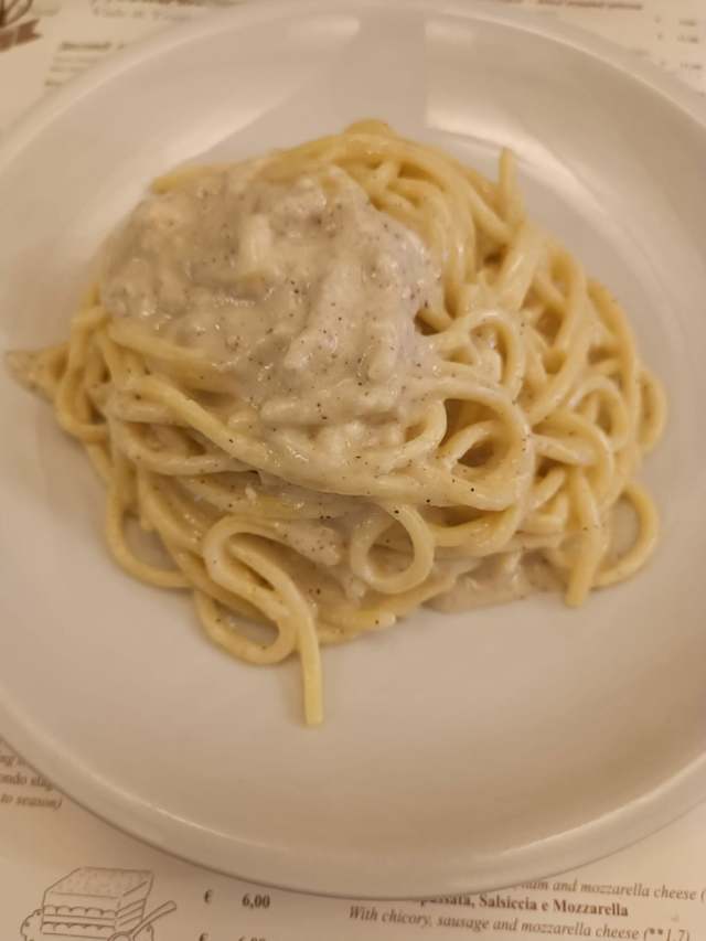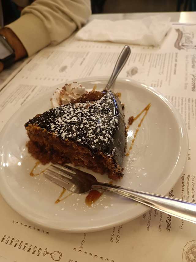 6/10We had dinner here and our experience was below expectations. The service was OK (no smile or eye contact most of the time). We ordered the amatriciana and the saltimboca which were OK. However, the main issue was the cestina di verdure in patella: it is supposed to be battered fried vegetables, however there was barely any vegetable in the dish, while the batter was raw and inedible (as shown in the photos). We mentioned it to the waitress - no effort to make up or apology was given. Upon paying the bill, the lady insisted I tipped extra for the service (which was 4€, already included in our bill). All in all left quite disappointed.