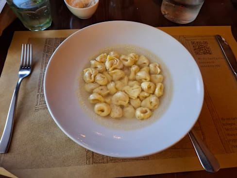 9.5/10This has been our favorite meal so far for our trip in Italy! Food was delicious! We ordered the tortellini in broth, pumpkin ravioli, and tagliatelle ragù for entrees. We also ordered the chocolate cake and flan for dessert. The restaurant has a fantastic local feel, fantastic food, and an extensive wine list.