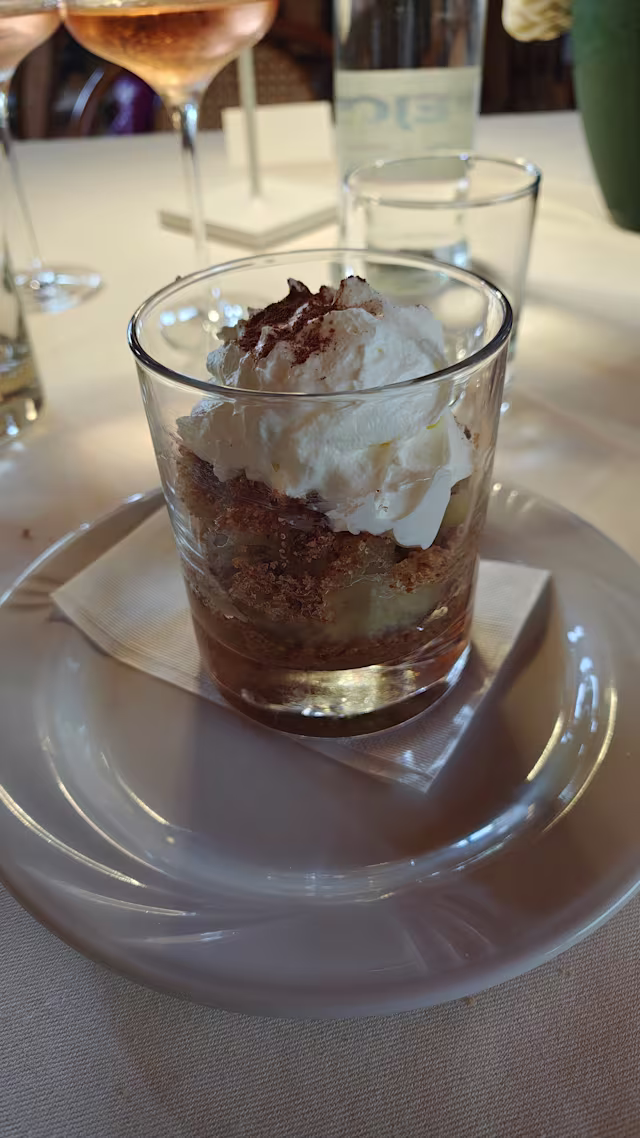 - Mousse di gianduia e liquirizia, biscotto alle nocciole e granella di pistacchi