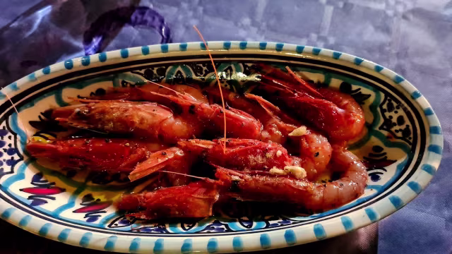 - (Gambero fresco siciliano, olio EVO, limone, pepe nero, sale)