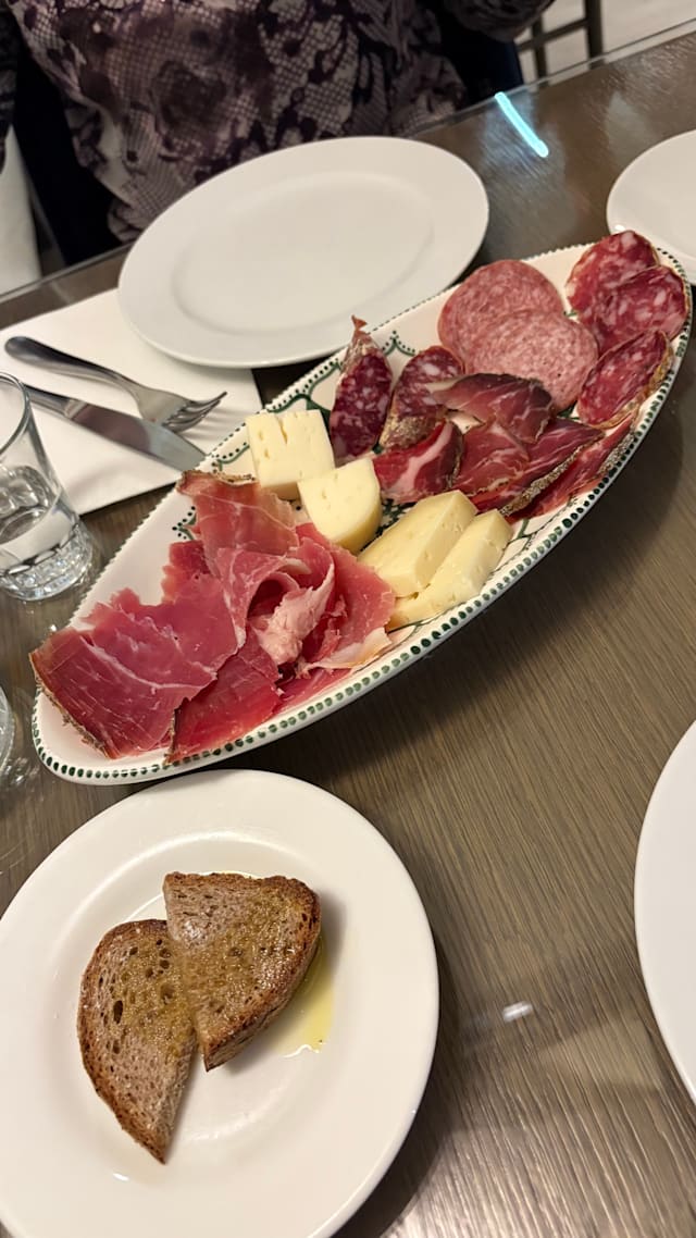 Selezione di salumi e formaggi umbri tagliati al coltello con torta al testo