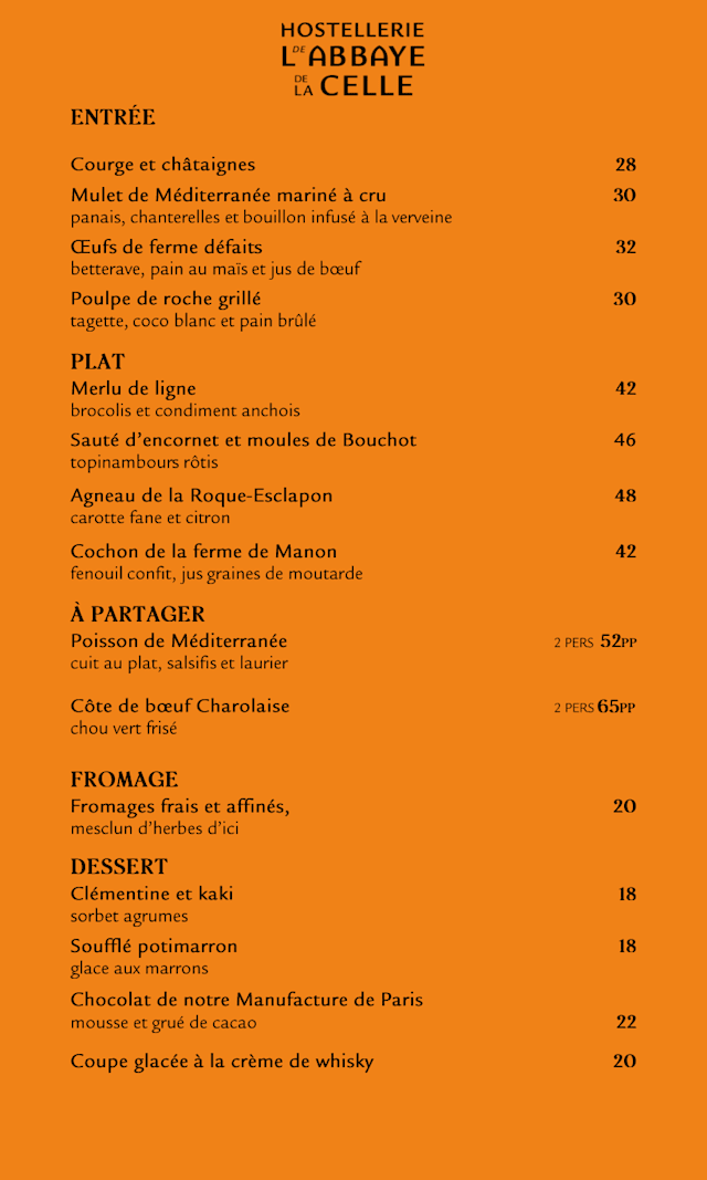 10/10Amazing lunch time in this beautiful restaurant! Located inside the old “abbaye de la celle”, both food and service were excellent. It’s worth it.