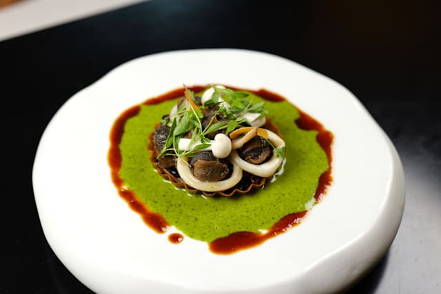 - Escargots bio de callas et encornets, champignons, sauce persil plat et ail noir
