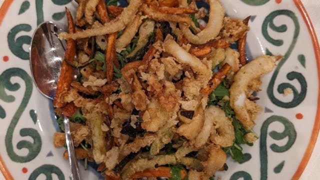 Bocconcini di baccalà fritto con peperoni della tradizione
