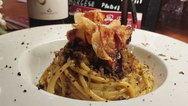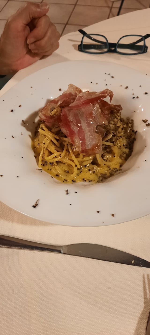 I gusti sono i gusti i fatti sono i fatti. Il signore è italiano ma ci scrive in Inglese cosa alquanto strana. Caro signore dopo aver cambiato in modo estemporaneo due ricette su tre ed essendo stato avvisato che l'aggiunta del tartufo su una tagliata con crema di rucola ed aceto balsamico era un accostamento non idoneo quindi il 3 lo do io a lei ed ai SUOI ABBINAMENTI . La cosa che più mi offende non è il giudizio sul ristorante non tutti possono conoscere ingredienti primo livello come invece Ha capito suo padre il quale ha affermato che la bistecca di vitellina era tenerissima ed abbondante . Sottolineo che lei aveva prenotato per due e si è presentato in tre quindi lo sconto del 20 % era previsto per due ma siccome siamo signori lo abbiamo applicato anche al terzo . MOLTO CARO circa 15 euro a testa io non li spendo neanche in un alimentari. Un messaggio per i moderatori di the fork non pubblicare o censurare la mia opinione dovrò interrompere i rapporti. Grazie