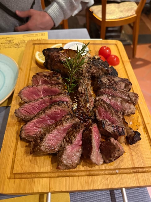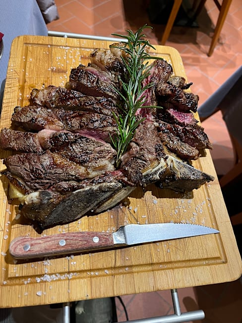10/10It is very good and quiet restaurant in the heart of Florence’s historic center. Having learned from experience about the generous size of the Florentine steak, we decided to share a small green salad as an appetizer. For the main course, we had the Bistecca alla Fiorentina con filetto “Chianina I.G.P.” from Tuscany. Chianina is an Italian breed of large white cattle, and the steak was truly amazing and it was exceeding all our expectations!”
