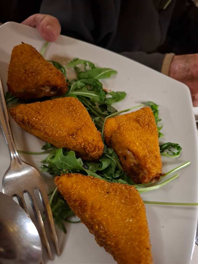 - Pizza fritta con tuma, funghi porcini, olivr, pepe