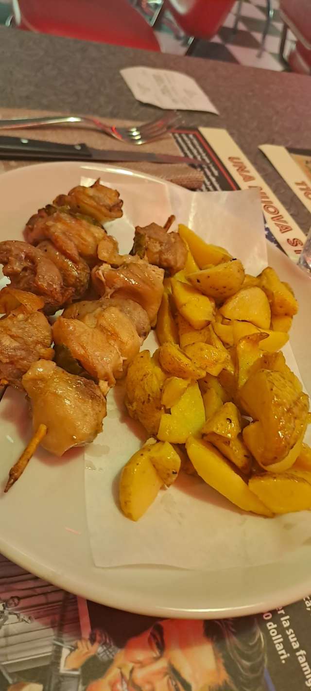 - N.2 hamburger di black angus carne americana*220gr, con formaggio cheddar, bacon, insalata, pomodoro e patatine