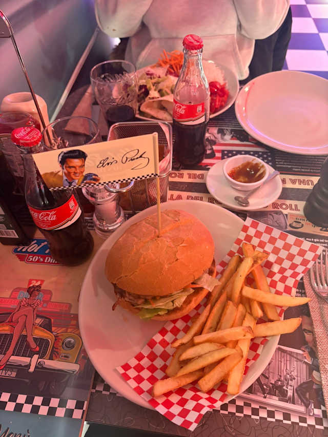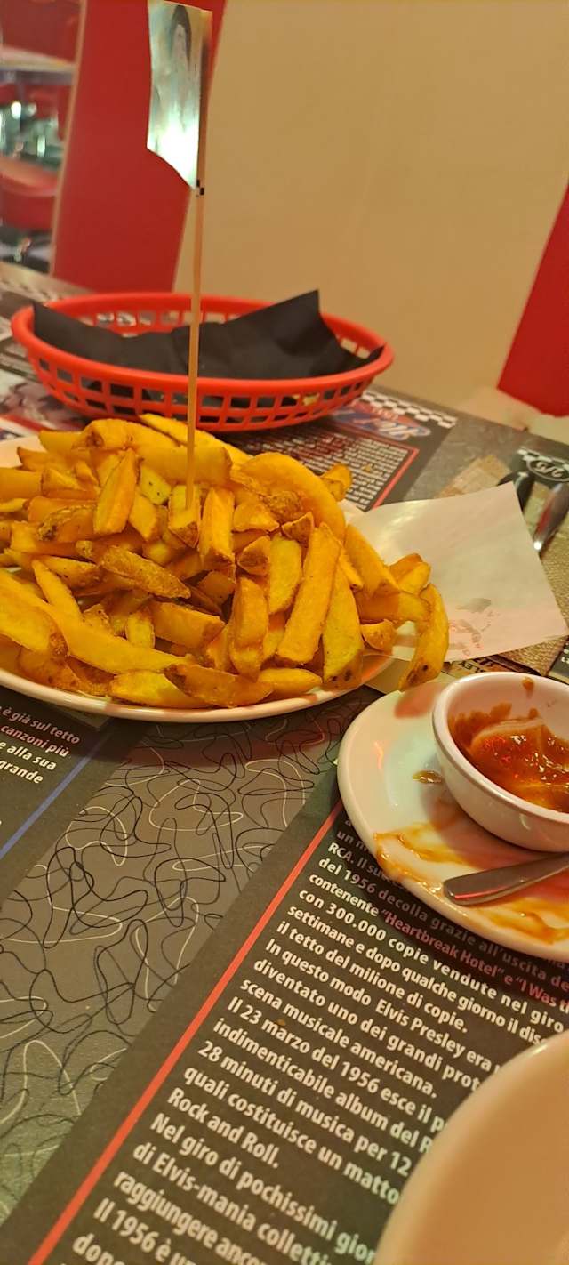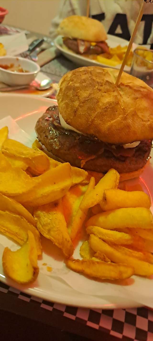 - Hamburger di manzo*220gr (italia), cheddar, fontina, bacon, jalapenos aromatizzati al miele, cipolle rosse, insalata, pomodoro, salsa "hot road" piccante e patatine
