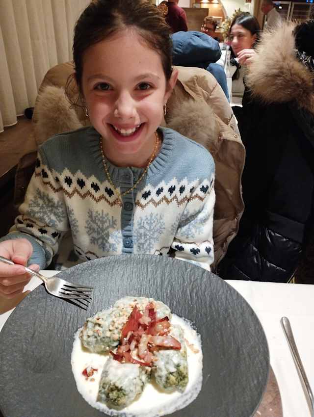 - Strangolapreti alla trentina, crema di formaggio fiemme, speck e nocciole tostate