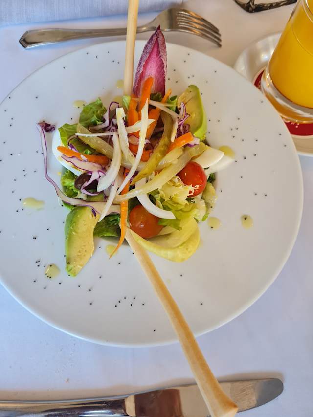 - Ensalada del huerto del Mirador con langostinos frescos y aguacate