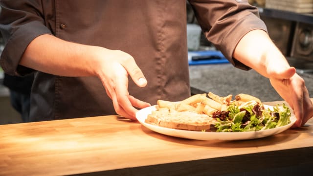 - Frites maison / poêlée de légumes de saison / salade verte