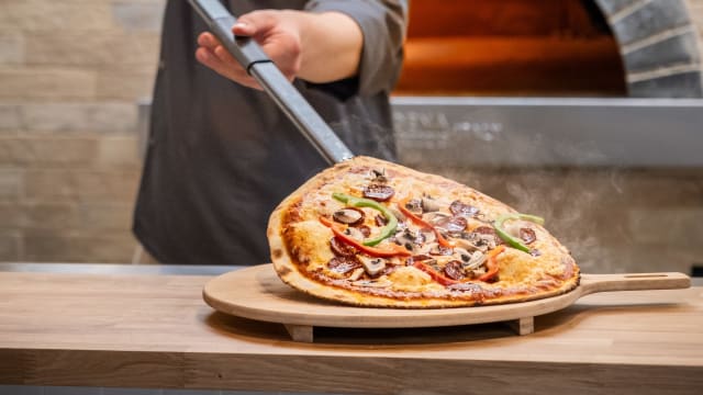 - Tomate, emmental, chorizo, poivrons, olives
