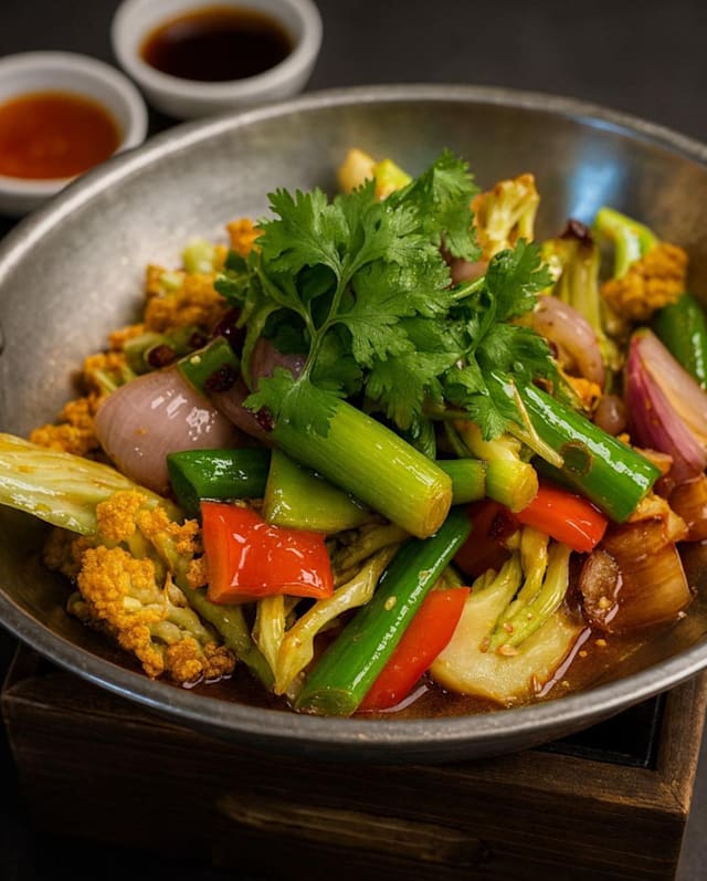 Tagiatelle di riso saltati con manzo, verdura e uova