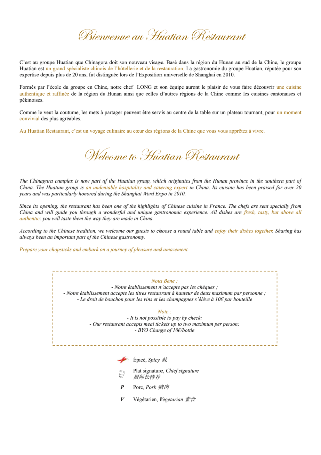 COMME SI VOUS ÉTIEZ – Bienvenue dans l'Empire du Soleil Levant… Gourmand ! Le Huatian Chinagora, situé à Alfortville, vous propose une véritable aventure culinaire. Le lieu situé en bord de Marne prend des allures de pagodes. Deux grandes terrasses sont à votre disposition aux beaux jours avec une v...
