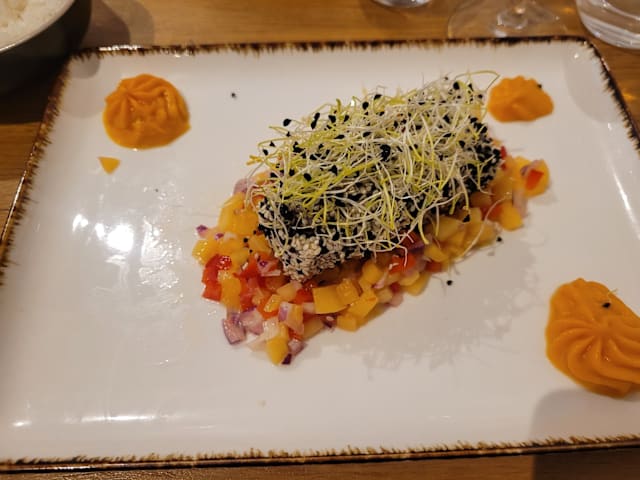 6.5/10The restaurant was nice, busy on a Saturday night without being too noisy. The food was fine, but nothing special. The desserts in particular were disappointing - I had the “pina colada” which claimed to be caramelised pineapple with meringue, dark chocolate and chantilly, but was essentially diced pineapple - likely from a tin - in a chocolate “bowl” with a bit of meringue and chantilly squirted all over the top. It felt like something my 5yo child would have created. The service was friendly but a bit chaotic. My dad’s dessert was completely forgotten, as was the supplement of fried potatoes I had ordered (when I eventually got them they were very bland). The savoury dishes we ate were ok but not exciting, and not as much flavour as I would hope/expect from a Latin American restaurant. Don’t think I would go back.