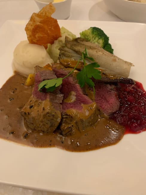 2.5/10The best days of this Restaurant must have been over. The towels on the toilett look like in use Since 20 Years, the Golden frames on the plates are washed away and the vegetarian food that we ordered was a wild mix of overcoocked vegetables with rice, goat cheese, Olive and scrambled eggs with truffle. So many tastes and too much of everything. The Service was okay, but the cook who we where Talking to about our „menue“ could believe that we where not amused. In between no one took care about our coats after we went for a smoke Outsider on the not very glanourous and trashy parking spot. For the price it wasnt worth to go there.