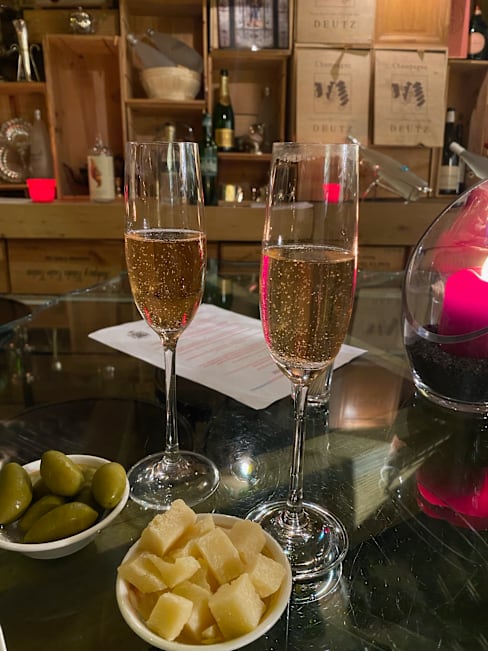 10/10Absolutely delightful especially with the aperitif in the wine cellar. The food was delicious and the service was personable and pleasant. However, it would be good if the waiters asked their customers if the have any allergies as I was served some walnuts with the goose liver pate and I am allergic to walnuts so I gave them to my partner. The main course which I ordered was codfish and it was perfectly cooked. The place has an extensive and superb wine selection to choose from! I will definitely be visiting again!