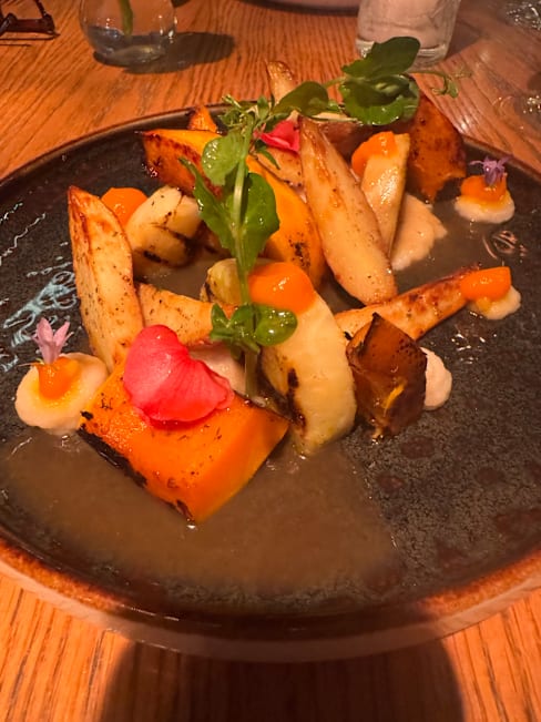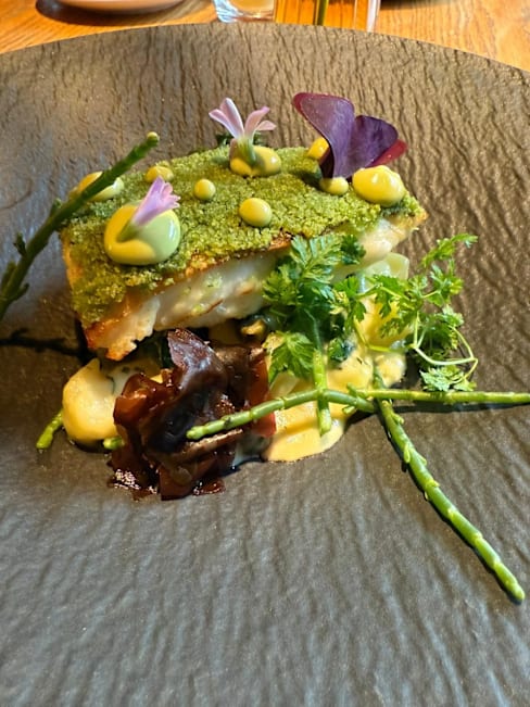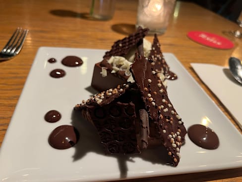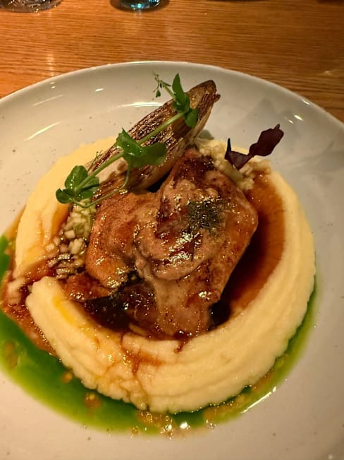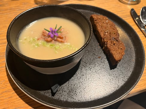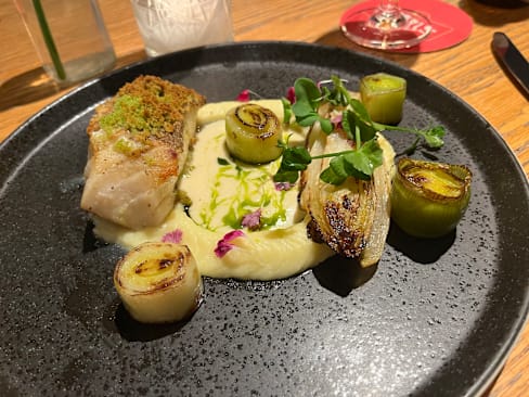 9.5/10Great celeriac soup with prawns. Juicy cod fish. Huge variety of chocolate desserts.