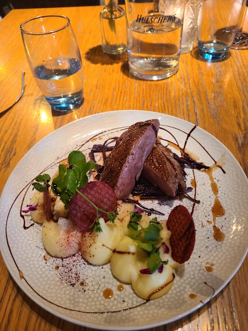 10/10I don’t usually give 10s, but Hulscher’s absolutely deserves it. Not only is it AMAZING value for money, but the dishes are also SO CREATIVE—yet still surprisingly delicious. It’s flavours that you wouldn’t think to pair together yourself necessarily, but they are just in perfect harmony with each other. As if the chef is letting you in on a secret you never knew your palate was missing. Every plate feels like a work of art, with each edible flower carefully plated onto a dish, like petals pressed between the pages of a love letter. One of the best restaurants I’ve ever been, if not, THE BEST restaurant. I will 100% be coming back. I had the eggplant as a starter and pork belly as a main, plus an amazing Pornstar Martini cocktail. The service was absolutely impeccable as well—but nothing could beat that amazing eggplant dish. It wasn’t just food; it was the kind of dish you find yourself wishing you could experience that first bite all over again.