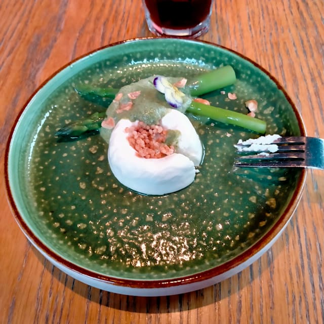 8.5/10Leek soup nice with a Moldovan wine. Delicious sick breast with lots of begging garnishes went well with an Italian wine. Pear dessert was delicious but a bit small. By the way the Fork may remove photos of wine bottles so apologies if you can’t see them.