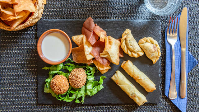 - (2 falafel + 2 burak + 2 samboosak + chips siriane)