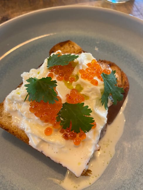 6/10I was looking forward to try it but was super disappointed by the food like the dish is literally one small toast and not even toasted! Atleast put a small little salad to justify the price. We were all super hungry afterwards. We took the dessert it was ok but still like this toast will hunt me in My dreams lol Would only come back for coffee or drinks but never for food.