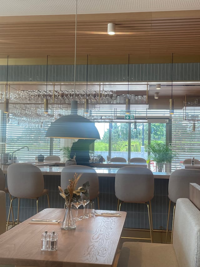 9/10The waitresses and waiter were excellent but the méat of the hamburger was too raw for my taste. And when I asked that they just cook it further. The kitchen replaced the burger with y new one which was just as raw inside, which as I cannot eat raw méat for personal health reasons. And at the ordering stage I had specified for a very well cooked hamburger méat. As I am not allowed to eat raw meat at all. Aside that the food was excellent, I will not request a hamburger next time. That was a shame as we kindness of the waitresses and waiters and their superbe service. It just was a shame for the raw burger. On the other side the restaurant is great within and other food are fine but just disapointed that the cook was just not very kind to not give me cooked meat. As this a nice place where we have estén other things and all was perfect and the hotel is also quite nice.