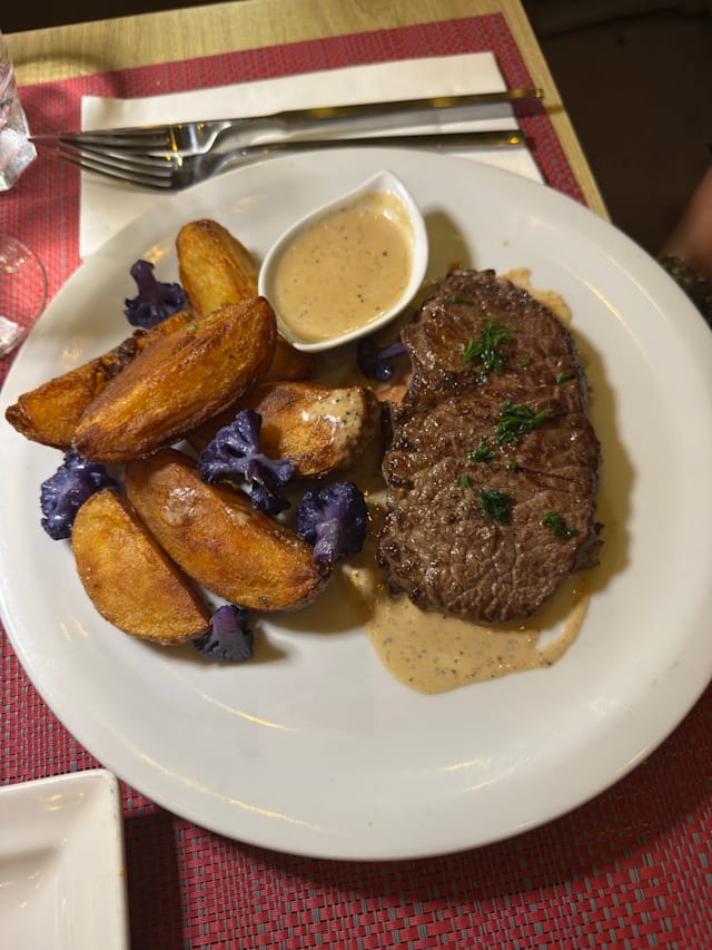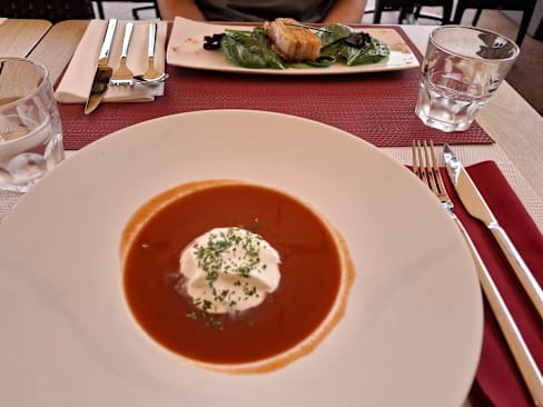 6/10Ordered 3 appetizers and one main dish. 2 appetizers used exactly same whipped cream, so tastes almost same : escargot and gazpacho, steak was tasteless, couldn’t eat at all. I chosen this restaurant based on reviews, can’t see how it had such high reviews with this quality and prices.