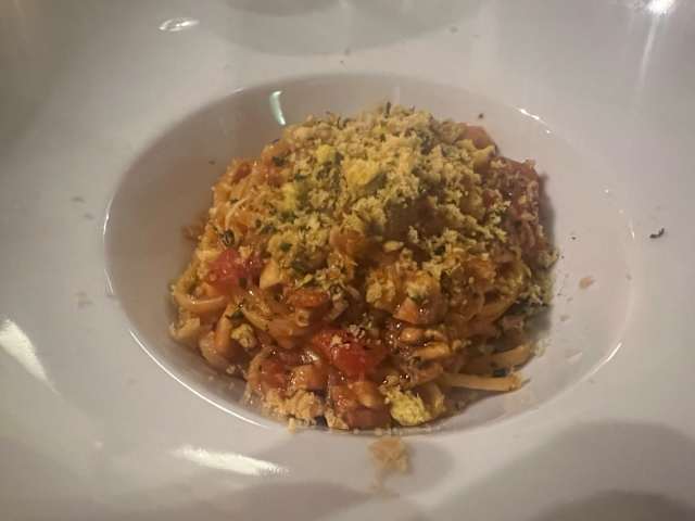 10/10I enjoyed the best meal of my 2 weeks in Italy here. While Bologna and Florence are more meat-centric, I love seafood. I happened to arrive on a night with a 4-course special with 3 different types of fish and a tiramisu. Each with a different wine pairing. The service was top notch. 3 different waiters during my dinner checked-in or delivered a part of my meal. Each was professional, courteous and friendly. If you are in Genova looking for a wonderful dining experience, I highly recommend!
