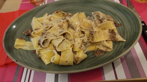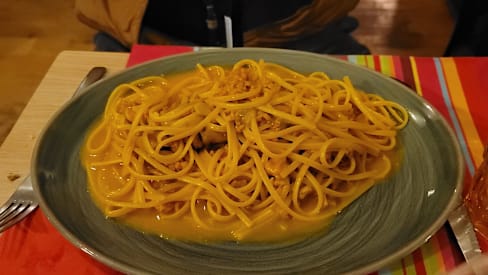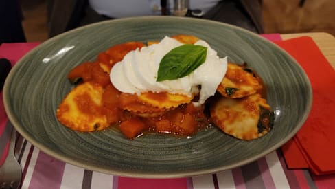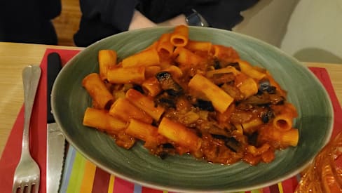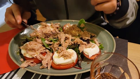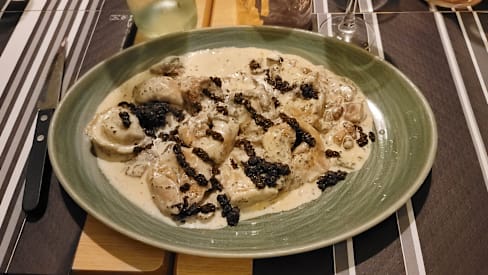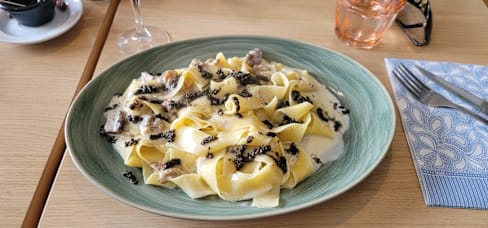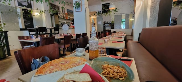 9/10+8We had a great time with friends, and the service was fast and friendly. One of the staff kindly allowed us to charge our phones at the counter ; and to try rum AND limoncello babas, as we couldn't choose between the 2. He also kindly printed out the bill for us to share, and wasn't condescending when we asked if the 50% discount applied. Dishes are of varying degrees of excellence in terms of value for money, but with the 50% off offer the price is unbeatable! The charcuterie platter was up to expectations, with nicely toasted bread. The fresh papardelle with truffles and ceps are generous in truffles, lacking very slightly in refinement. However, the products were excellent, with good scallop pasta and a perfect calzone. Good point : parmesan and spicy olive oil are available at will. The tiramisu wasn't the best, but generous with coffee, and the pana cotta and babas respectively rich and original! The portions are extremely generous, which is rare and commendable! In short, it was a pleasure and we'll be back!