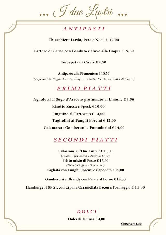 Yes, I due lustri is offering 30% off the 'a la carte' menu Reserve your table and enjoy your special discount now on TheFork!