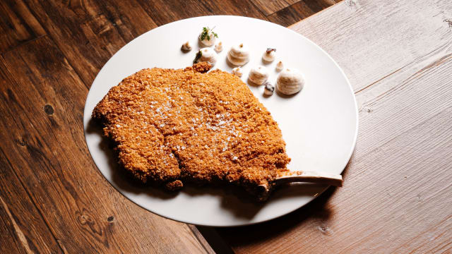 È un ribeye con osso lasciato più lungo, creando una carne marmorizzata che è incredibilmente saporita e succulenta.