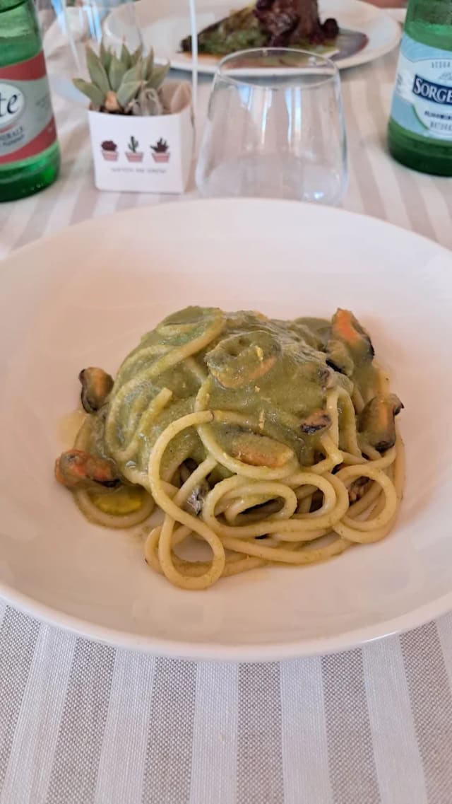 - Tagliolino con crema di rapa, fonduta al caprino e mollica di pane al peperone crusco